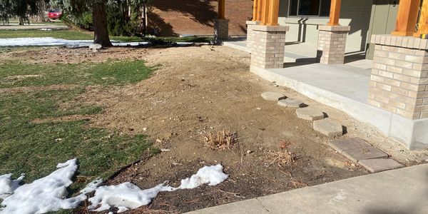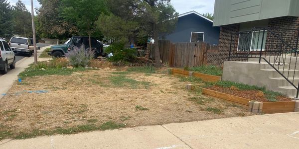 2022 'before' photo. These homeowners had a large grass yard which they removed on their own. They were seeking a xeriscape which provided color as well as some privacy for their patio area. This from Gate and Green neighborhood in Broomfield