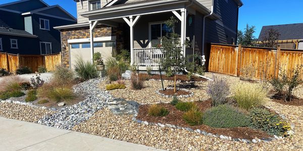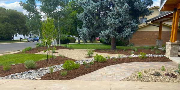 These Broomfield homeowners had updated the front of their home and were seeking complimentary landscaping. Much of the lawn had been damaged and they preferred a xeriscape